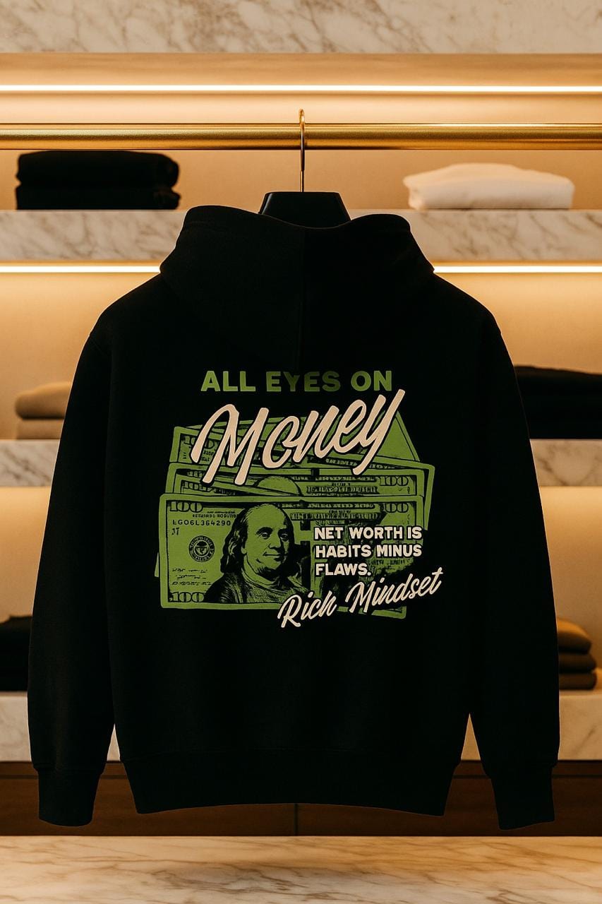 Keep your focus sharp and your goals clear with the RITCHUNO “All Eyes on Money” Limited Edition Hoodie — a symbol of relentless ambition and success-driven mindset.